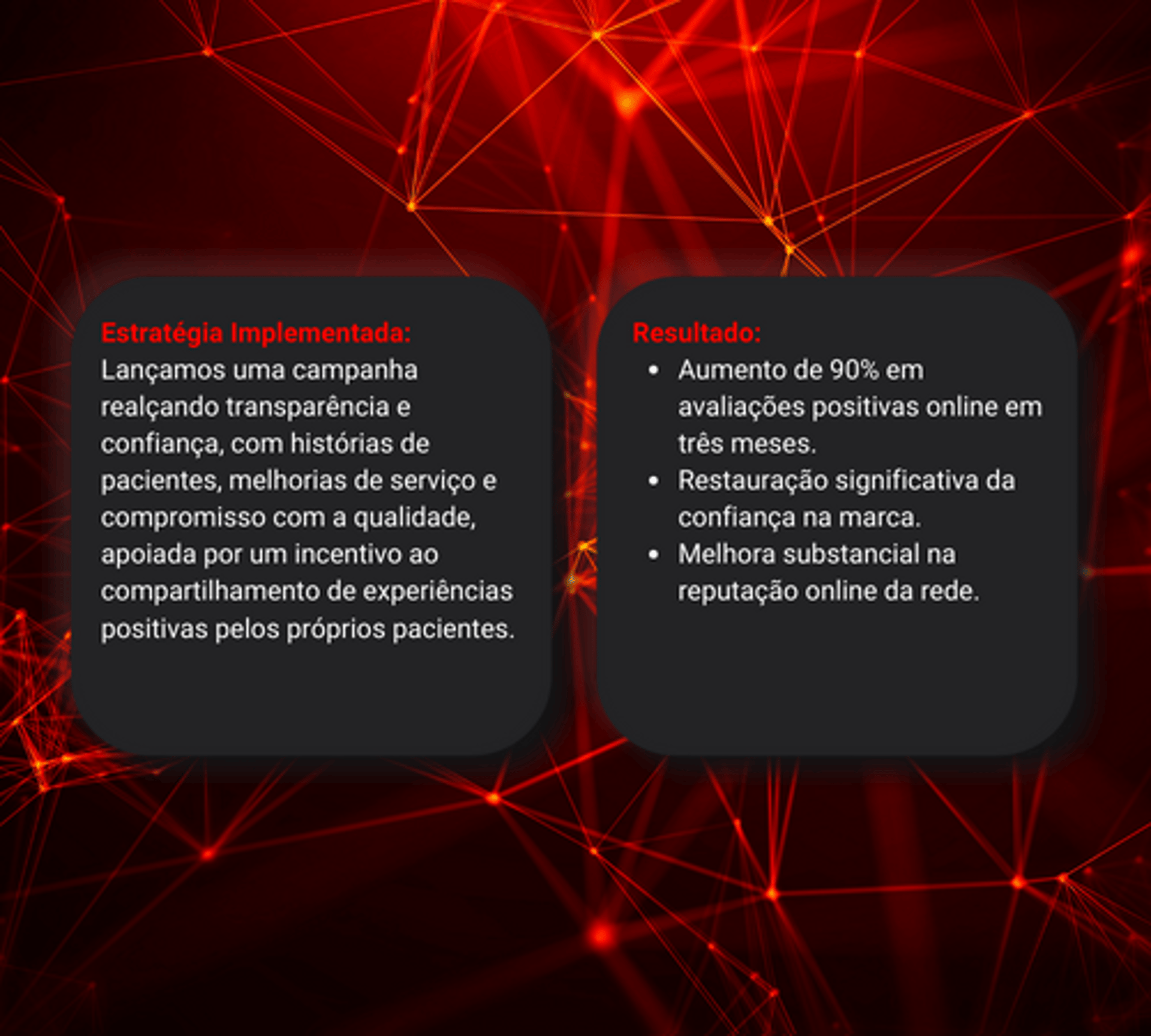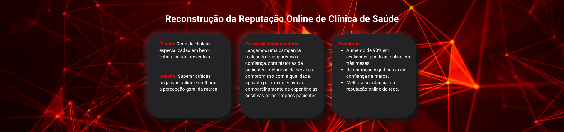 Temos protocolos de gestão de crise para responder rapidamente e de maneira profissional, buscando sempre proteger e melhorar a reputação da sua marca.